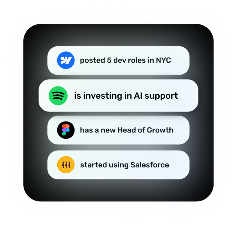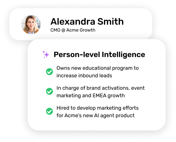 Combine company-level signals with decision-maker priorities and projects to deliver perfectly timed messaging that feels personal and ties directly to real business needs.